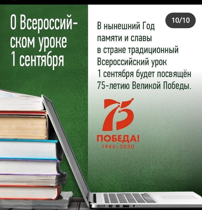 1 сентября во всех школах пройдут уроки посвященные 75-ой годовщине победы в Великой Отечественной Войны.