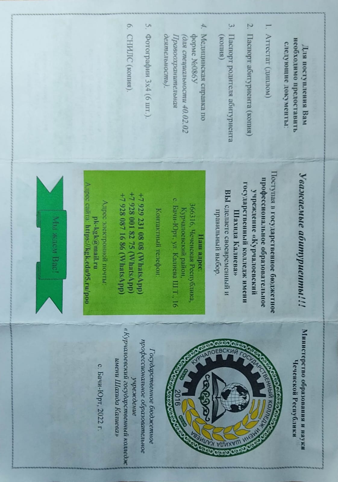 14.03.2022В рамках профориентационной работы 14.03.2022 года обучающиеся 9 и 11 классов МБОУ "Бачи-Юртовская СШ №1" посетили ГБПОУ "Курчалоевский государственный колледж имени Шахида Калиева".Заместитель директора по учебной работе и преподаватели колледжа провели беседу с учащимися, показали учебные кабинеты, в которых проходит учебный процесс, показали лаборатории и мастерские, где студенты повышают свое мастерство по рабочим профессиям.