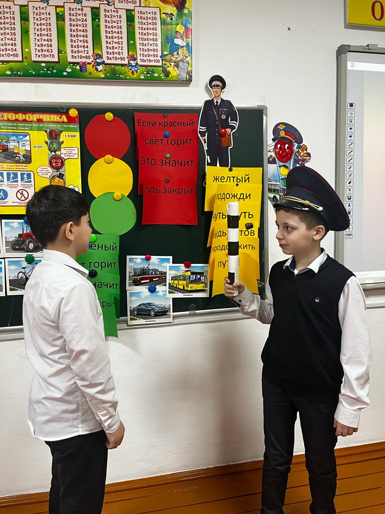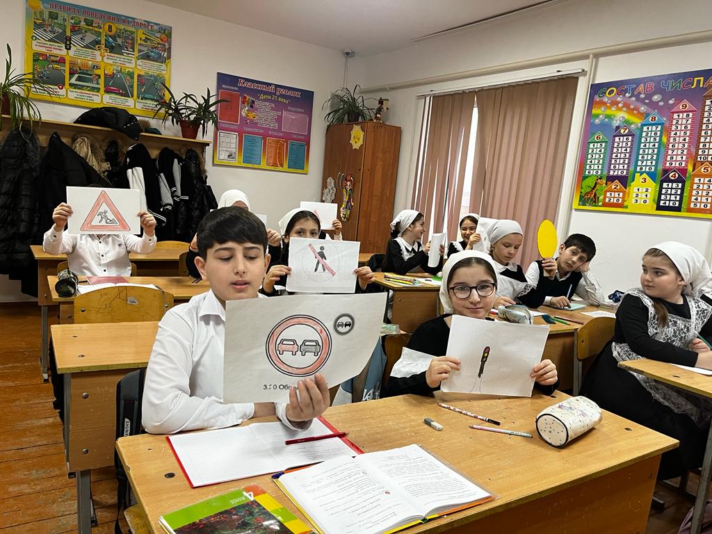 Цели: -формирование представления младших школьников о безопасности дорожного движения; -закрепить знании учащихся о регулировании дорожного движения; -познакомить с историей возникновения правил дорожного движения; -развивать умения детей распознавать дорожные знаки; -развивать мышление, память внимание;-воспитывать общую культуру поведения на улице.Ожидаемые результаты:умение предвидеть возможную опасность, находить способы избегать ее;умение заботиться о своем физическом здоровье и соблюдать правила безопасности жизнедеятельности;проявление дисциплинированности, выдержки, самостоятельности в соблюдении правил поведения;В игре принимали участие 4 команды нашего класса: «Знатоки», «Полицейские», «Дисциплинированные водители», «Умники», которые показали знания законов улиц и дорог, правил дорожного движения. Учащиеся разгадывали кроссворды, которые детям подсказывали ключевые слова, для чего нужны ПДД. А также были проведены викторины между командами, которые учащимся помогли вспомнить дорожные знаки ПДД. Урок был очень насыщенным и интересным. Учитель Мата Мусаевна рассказывала учащимся, когда и где появились первые правила ПДД. Учащиеся выходили к доске с дорожными знаками и читали стихи. Были проведены разные игры, конкурсы между командами и капитанами: «Игра-соревнование дорожные знаки», «Игра-Светофор», «Дорожные ситуации» «Конкурс капитанов» и т.д.Учащиеся активно принимали участие, соревновались между командами, проявляли умение, навыки и смекалку. Показали умение работать в коллективе, сплоченность и организованность. Ребята отлично справились с заданиями. Показали себя хорошими знатоками дорожного движения. Победила команда «Умники».Команды, которые победили получат грамоты на линейке. Все остались в отличном настроении после проведенного урока.На уроке присутствовали жюри: Эдилсултанова Марет Омаровна - завуч начальных классов; Худулова Петимат Зелимхажиевна - руководитель МО.В заключение отмечу: мне очень хочется, чтобы эти слова звучали в каждом из нас:Пусть движутся потоками машины,Водители спокойствие хранят.Ведь знают все, что правила единыДля взрослых пешеходов и ребят.