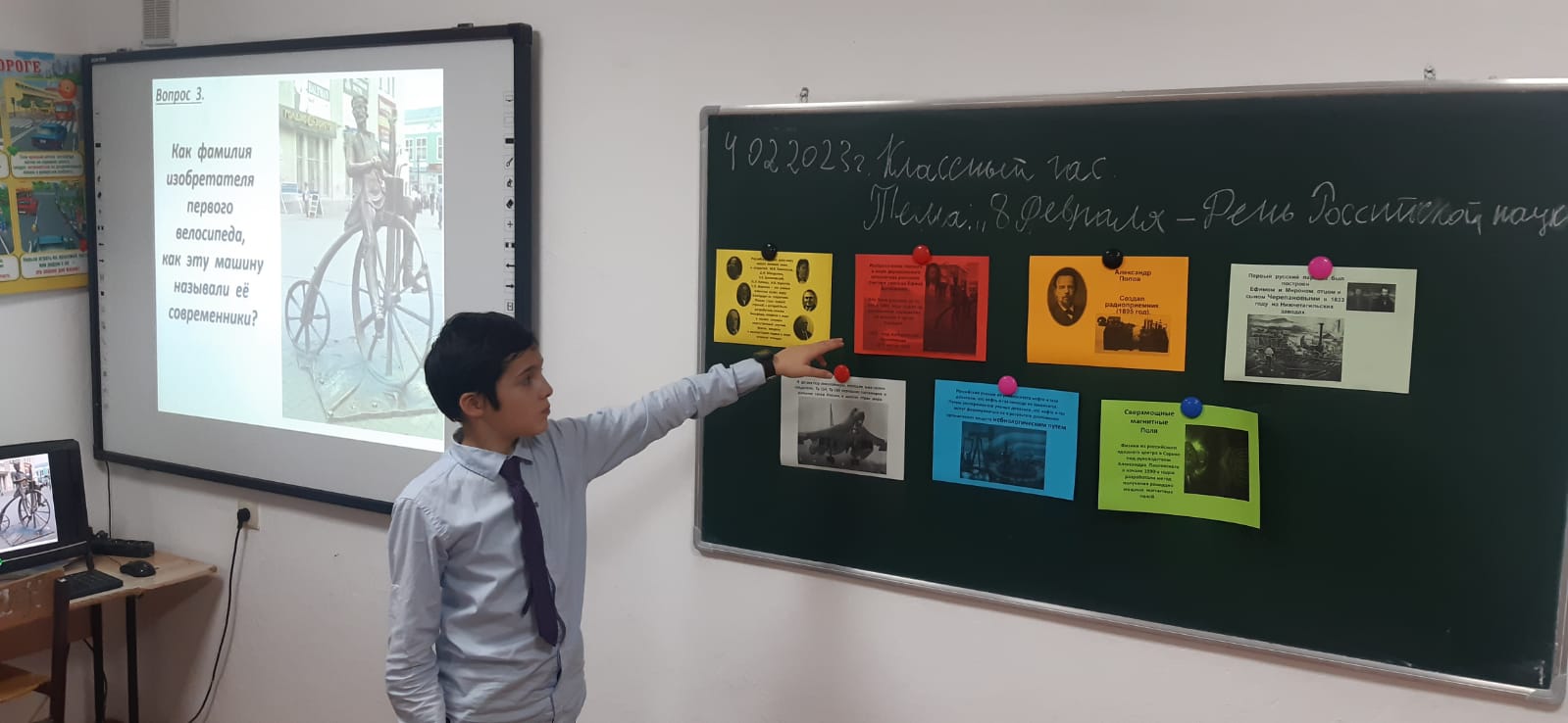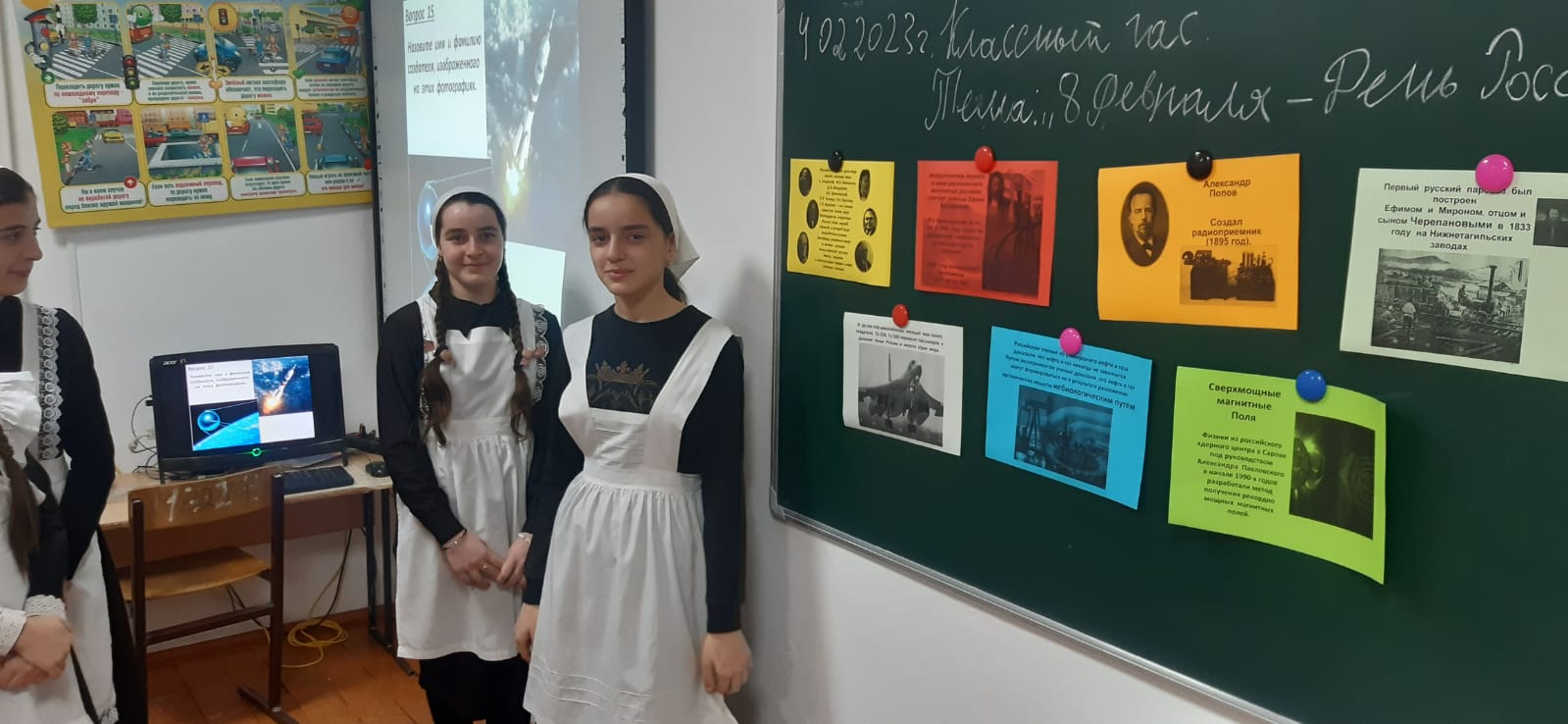 4 февраля 2023 года классный руководитель 6 «г» класса Хизриев Джабраил Магомедович провел открытый классный час на тему «8 февраля: День российской науки». Учащиеся Адамова Мадинат, Дениев Адам, Матиева Аминат, Матиева Ясмина, Умарова Макка, Умарова Хава и др. готовили информацию, связанную с развитием российской науки, с именами русских ученых и их открытиями, и активно участвовали в проведении классного часа. На первом этаже в фойе нач.корпуса учащиеся могли познакомиться систорией возникновения праздника и Великими российскими учеными, которые внеслинеоценимый вклад своими открытиями и изобретениями, изменив тем самым мир.В 7 «в» классе прошла увлекательная викторина «Историческая география», целью которой было не только проверить насколько обширны знания учащихся по истории и географии, но и познакомить их с отдельной научной дисциплиной «Историческая география». Подготовил и провел учитель географии Ибрагимов Асланбек Абшедович. Он является классным руководителем данного класса.Во время мероприятия состоялся очень важный и интересный тематический разговор. Россия вносила огромнейший вклад в развитие мировой науки. Российская академия наук сегодня - это крупнейший научно-исследовательский центр нашей страны. Отечественные ученые подарили мировой науке множество изобретений и сделали немало интересных открытий в различных сферах науки и повседневной жизни. Пятнадцать российских и советских ученых были отмечены Нобелевскими премиями. Ребята по вопросам и фотографиям выдающихся ученых называли имена и их открытия. И кто знает, может, будущий лауреат Нобелевской премии растет именно в нашей школе! Ребята проявляли эрудицию, смекалку, получали новые научные знания в доступной форме.Подведя итоги можно отметить, что мероприятия, проведенные в 6 «г» и 7 «в» классах, были яркими, запоминающимися, пропагандировали научные знания среди учащихся и помогли выявить наиболее способных. Проведение подобных мероприятий в школе стало хорошей доброй традицией, потому что охватывает широкий круг вопросов, отвечает запросам учащихся, интересующихся не только школьной программой, но и разными науками.