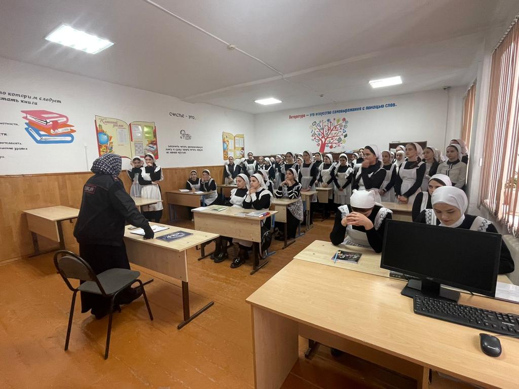 В беседе освещались вопросы об административной и уголовной ответственности несовершеннолетних за совершение преступлений и правонарушений. Подросткам было разъяснено, с каких лет наступает уголовная ответственность и какие наказания применяются за совершение преступлений. Также инспекторы затронули вопросы поведения учащихся в школе и общественных местах, уважительного и корректного отношения школьников к учителям, взрослым и сверстникам. Провели беседу на тему «Суицид». Беседа основывалась на конкретных примерах и фактах из профессиональной деятельности инспекторов. Также рассказали, что в мире очень много людей уходят из жизни по собственному желанию, путем самоубийства. Дали понять учащимся, что это самое страшное слово. Люди не должны порождать в себе причины решения суицида.Зам.дир.по ВР и ДНВ объяснили, какие причины толкают людей на такой поступок: 1. пьянство 2. депрессия 3. одиночество 4. несчастная любовь 5. не сдача ЕГЭ Педагог-организатор по ДНВ Абдурзаков А.Ш. коснулся суицида в религии. У мусульман суицид – большой грех, поэтому среди мусульман такие случаи большая редкость, т.к. мусульманин не должен совершать грех - суицид. 20-23 февраля 2023 года классные руководители 8-11 классов очень доступно провели беседы, классные часы на данную тему.
