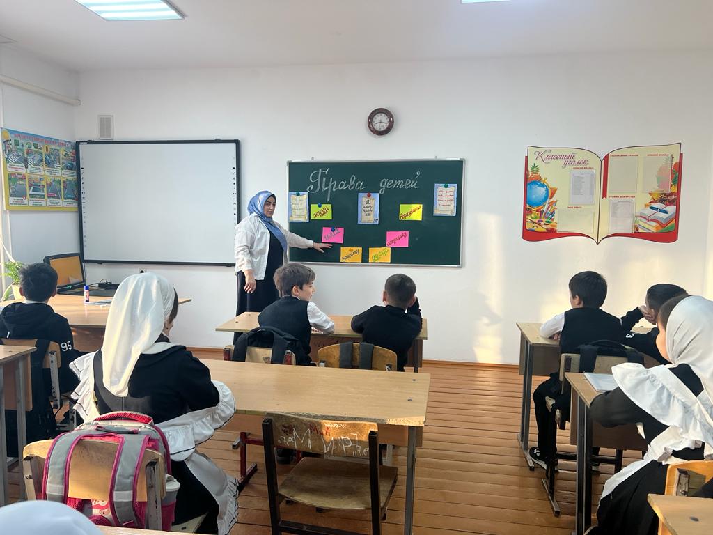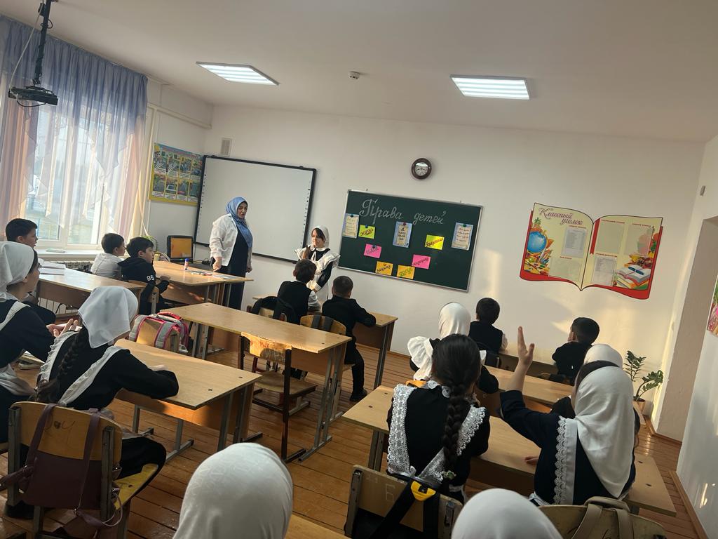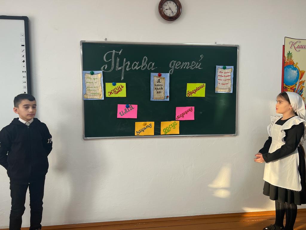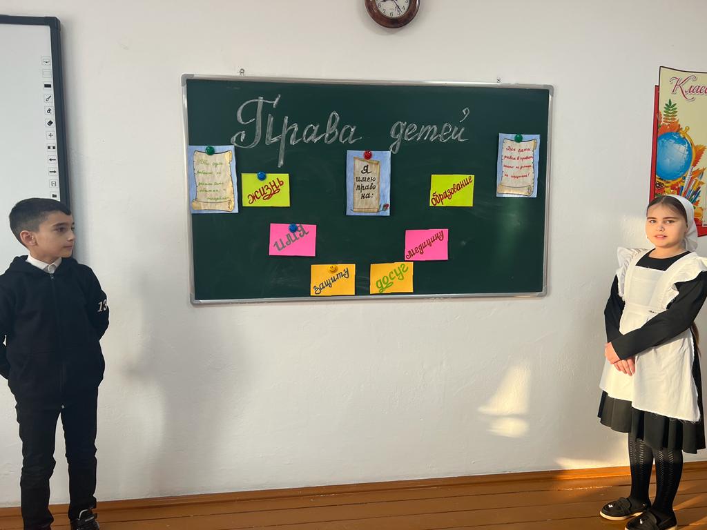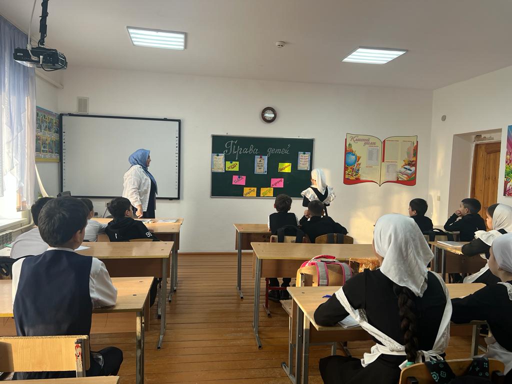 В ходе мероприятия, учащиеся выходили к доске и по очереди называли свои права, которые известны им самим. Каимов Аюб вышел к доске и назвал следующие права на жизнь, гражданство, имя, образование, медицину, защиту, досуг. Солтамурадова Хажар внесла дополнение к вышесказанному о правах ребенка на семью, выбор, быть понятым и принятым таким, какой он есть. Магомадова Марьем высказала свое мнение, что ни один ребенок не должен быть обижен и оскорблен, а также все дети равны в правах и никто не имеет право их нарушат, а мы со своей стороны должны выполнять свои обязанности. Дети предпочтение отдавали работе с красочными иллюстрациями, во время проведения бесед были активны все дети, с восторгом и интересом смотрели презентацию и видеоролики. Свои права знать нужно, но нужно помнить и про обязанности, не нарушать прав других людей.Учитель Эсила Саловдиевна рассказала учащимся о конвенции о правах ребенка, принятой в ноябре 1989 года. По конвенции, ребенком является каждое человеческое существо до достижения 18-летнего возраста. Мы должны проявлять и воспитывать в детях уважение к правам и свободам личности, чувства собственного достоинства, справедливости, ответственности за свои поступки, желание соблюдать права. Учащиеся активно участвовали в беседе о правах детей, а также приводили примеры из сказок, где нарушались права детей, например: «Гуси-Лебеди», «Маша и Медведь», «Снежная королева», «Золушка», «Красная шапочка» и т.д. Обсуждали жизненные ситуации, в которые попадают знакомые ребятам сказочные и литературные герои, чьи права оказались нарушенными с точки зрения Декларации о защите прав детей, разобрали ситуации «Права и обязанности».Таким образом, данное мероприятие позволило сформировать у учащихся первичные знания в сфере права, повысить уровень правовой культуры, развить у учащихся творческие способности и интерес к законодательству.