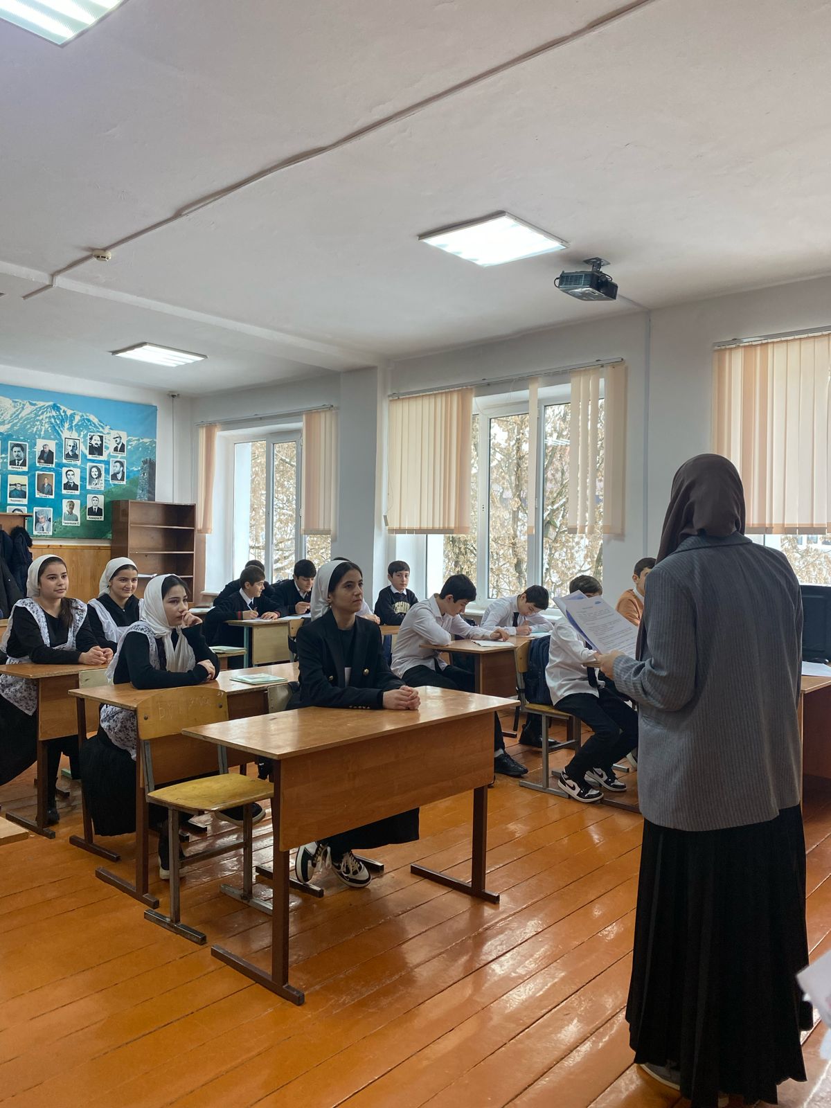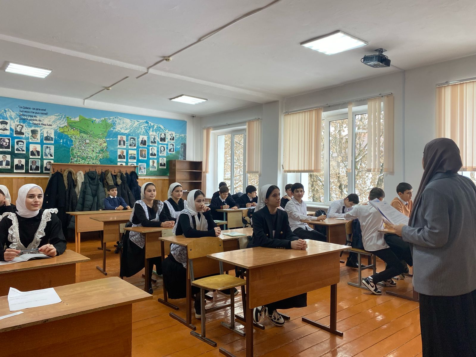 29.01.2024В рамках проекта «Социальная активность» национального проекта «Образование» 29 января 2024 года педагог по ДНВ Абдурзаков Али Шоайпович, совместно с психологом школы Солтамурадовой Алет Джабраиловной и социальным педагогом Алиевой Яхитой Магомедовной, провел беседу с учащимися 8-11 классов по теме «Польза и вред средств коммуникации (интернет, телефон)». Цель: осознание учащимися необходимости умеренного по времени использования гаджетами и телефонами.