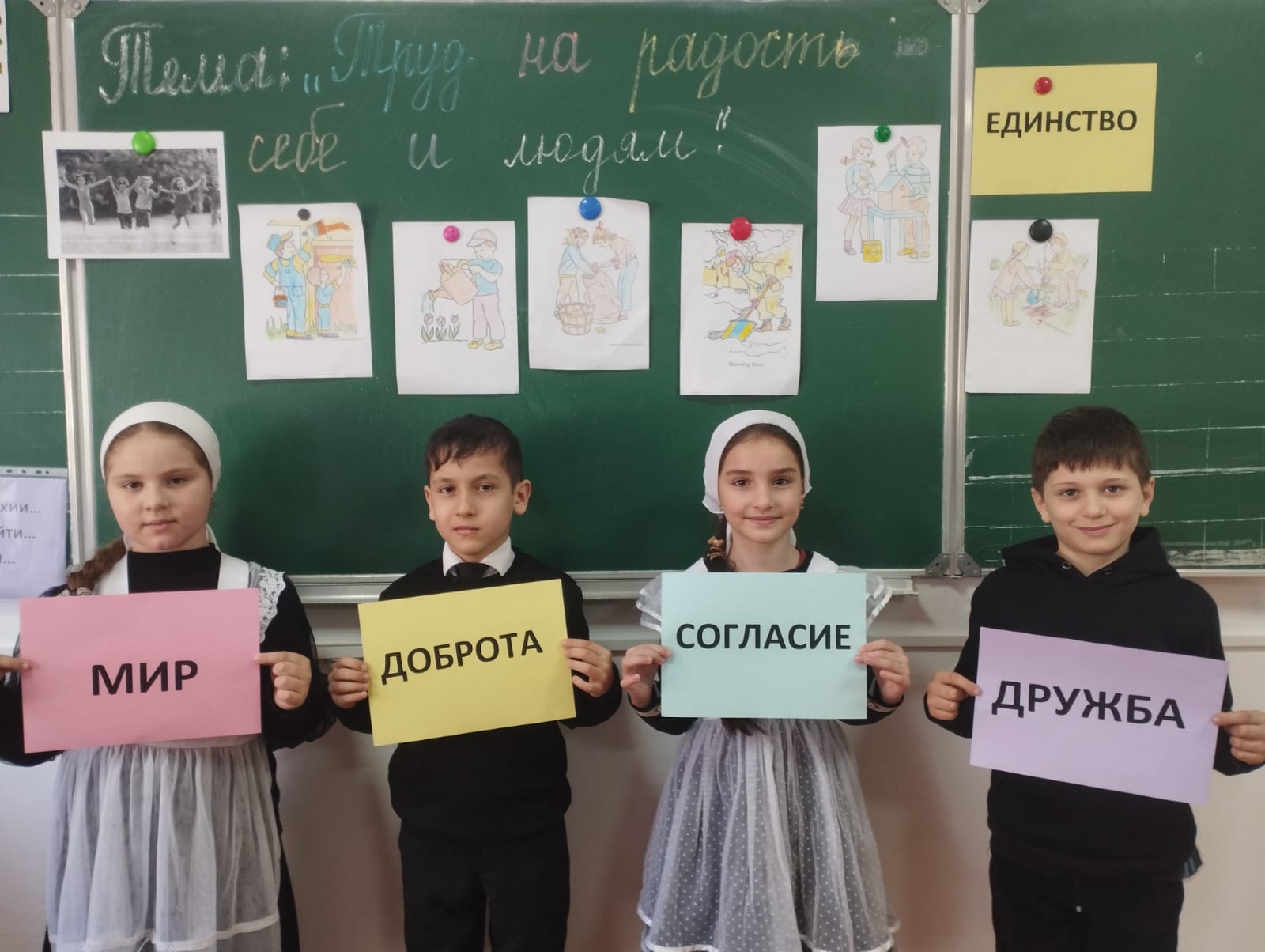 03.04.2024В рамках федерального проекта «Успех каждого ребенка» национального проекта «Образование», с целью формирования представления о значимости воспитания любви к труду у детей младшего школьного возраста 3 апреля 2024 года с учащимися 2В класса МБОУ «Бачи-Юртовская СШ №1» классным руководителем данного класса Азимовой Аминат Ахмедовной было проведено мероприятие по профориентации на тему «На радость себе и людям». Цели: формирование у детей понятий о дружбе и правилах дружбы, формировать добрые взаимоотношения между детьми, развивать стремление быть терпимым в обществе людей, воспитывать уважение и вежливое отношение к друг другу; знакомство учащихся с лучшими представителями профессии нашего села; развитие организаторских, исполнительских умений школьников, развитие их навыков коммуникативного общения.