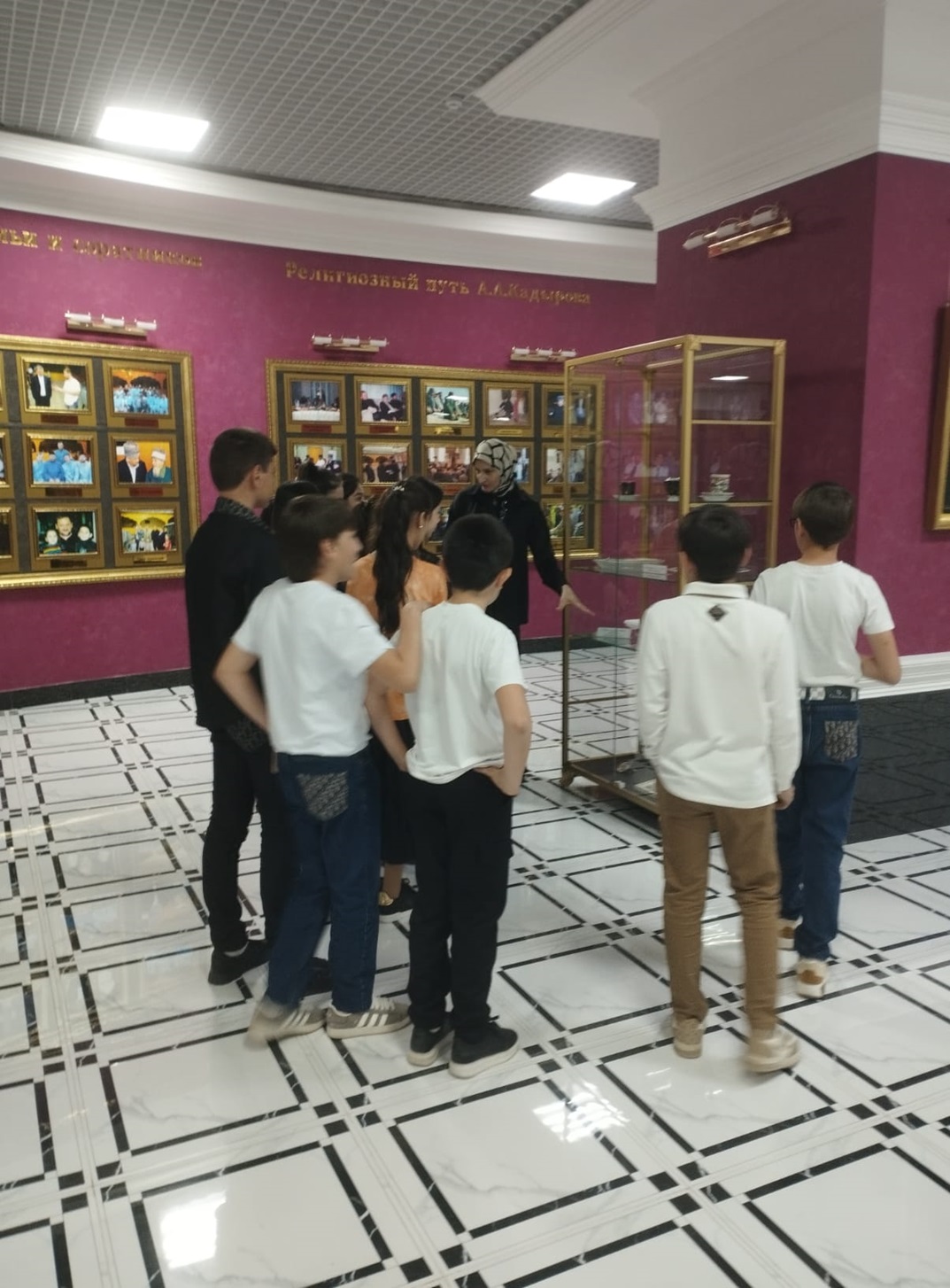 Детей встретила доброжелательная работница музея и начала экскурсию. Для посетителей была проведена экскурсия, в ходе которой ребята узнали много нового и интересного о Первом Президенте Чеченской Республики. Дети были в восторге от посещения музея. По их словам, экскурсия открыла им глаза на то, что сделал Ахмат-Хаджи Кадыров для Чеченской Республики и для России. После экскурсии дети с удовольствием прошлись по залу музея и сделали памятные фотографии.