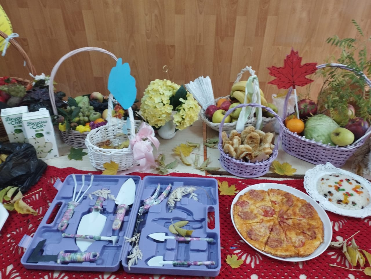 Всем гостям праздника была представлена выставка рисунков, поделок, изысканных блюд из овощей и фруктов, которую подготовили ребята со своими родителями. Огромное спасибо родителям за труд и внимание!