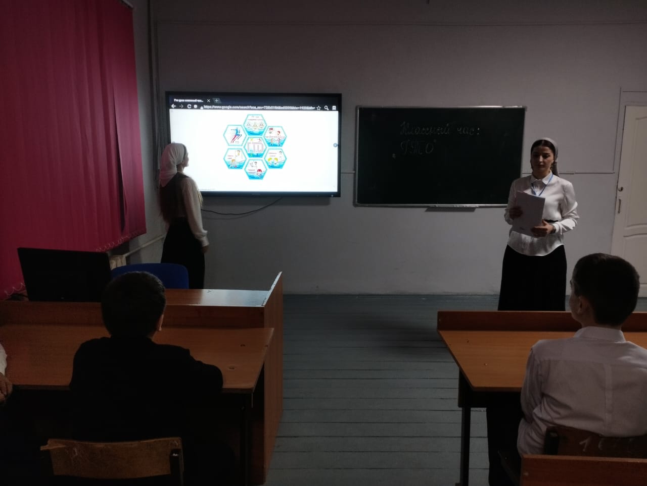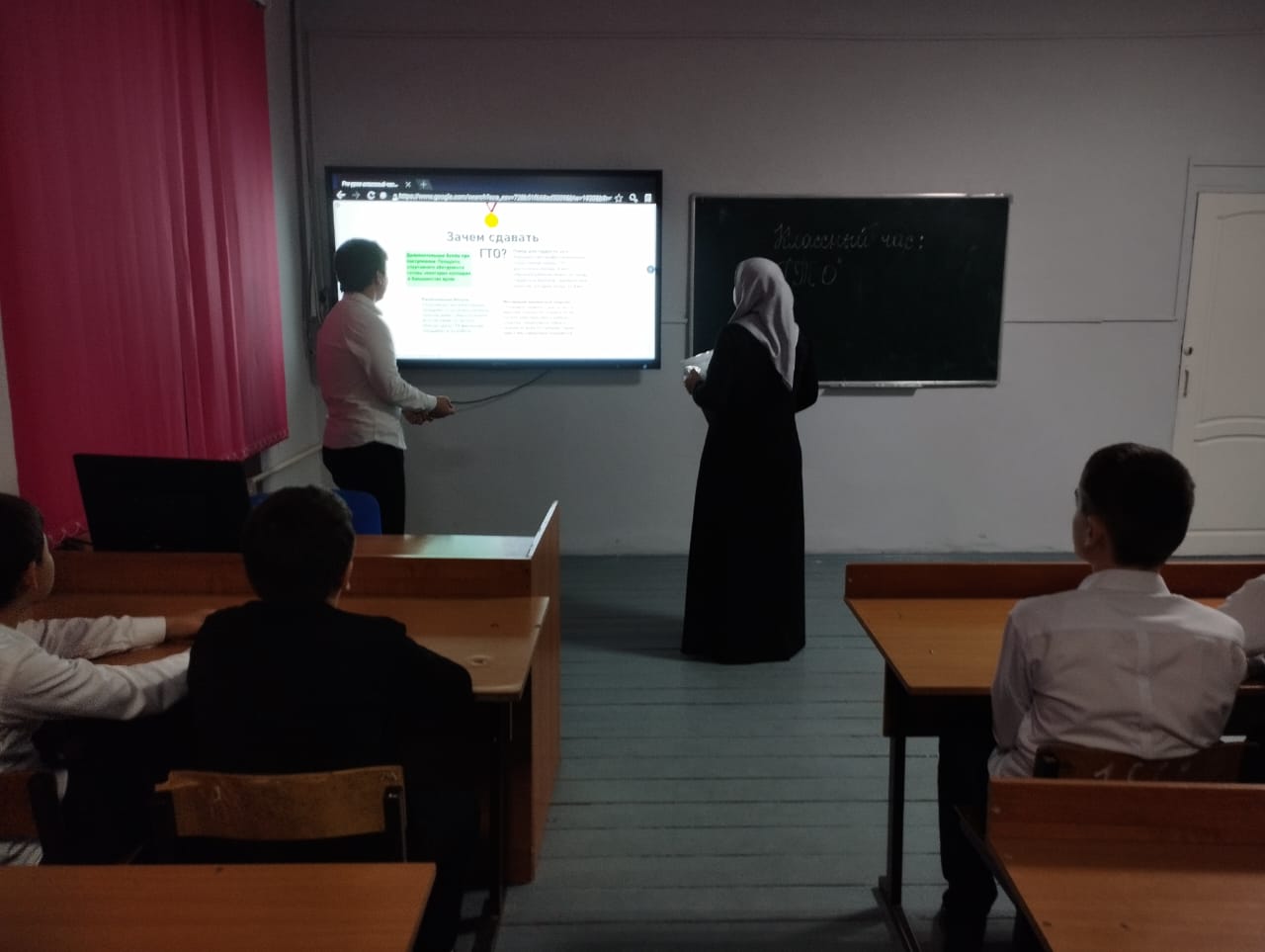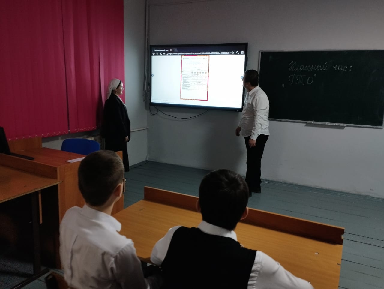 Во всех классах были проведены классные часы по данной теме. Уроки были проведены в разных интересных формах: классные часы, где ребята разбирались с вопросом «Что такое ГТО», смотрели презентацию обновлённых нормативов ГТО, проводили викторины о ВФСК ГТО.