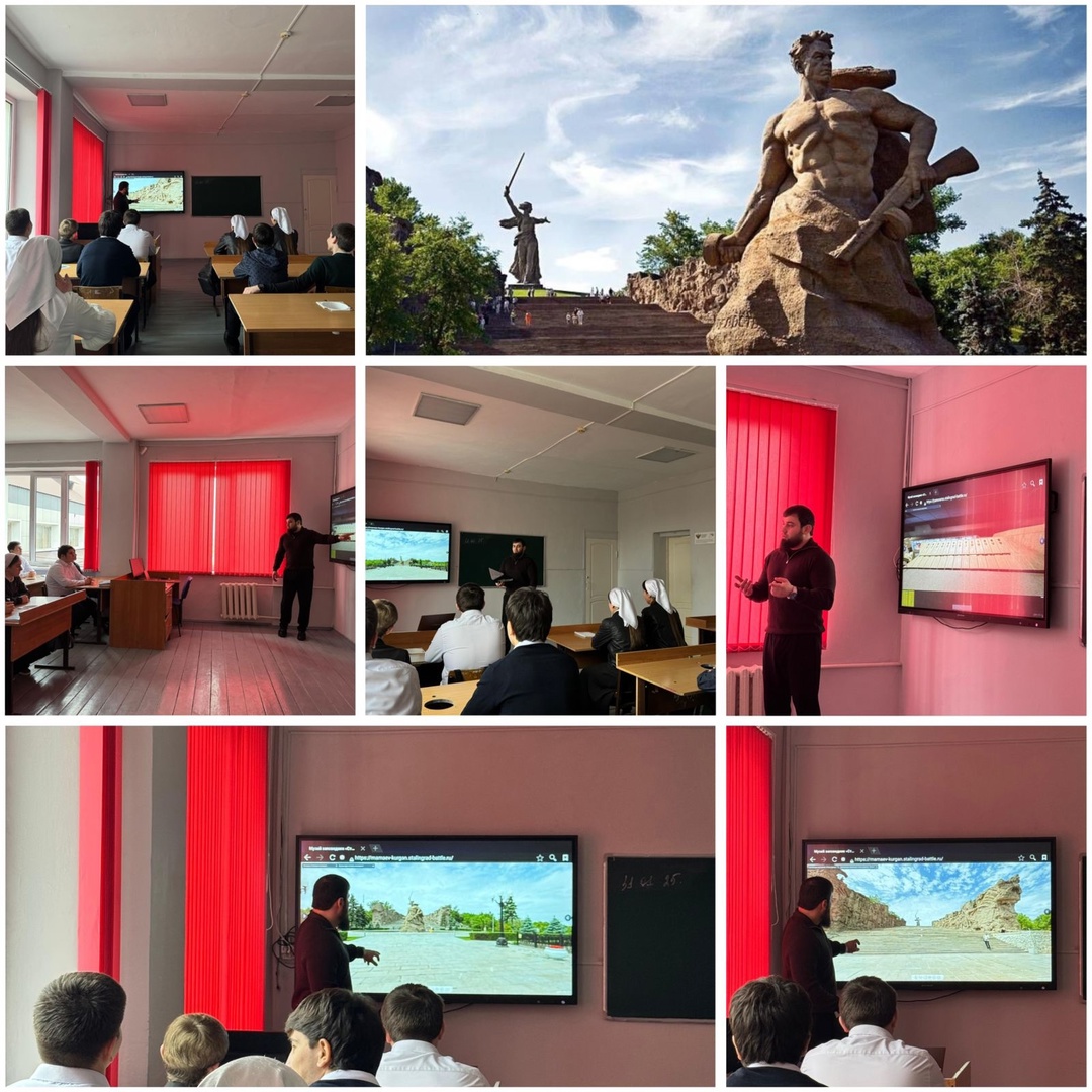 Советником директора по воспитанию Солтамурадовым М.А. была организована виртуальная экскурсия «Дорогами Победы», во время которой учащиеся побывали в Музее-панораме «Сталинградская битва» и на «Мамаевом кургане».