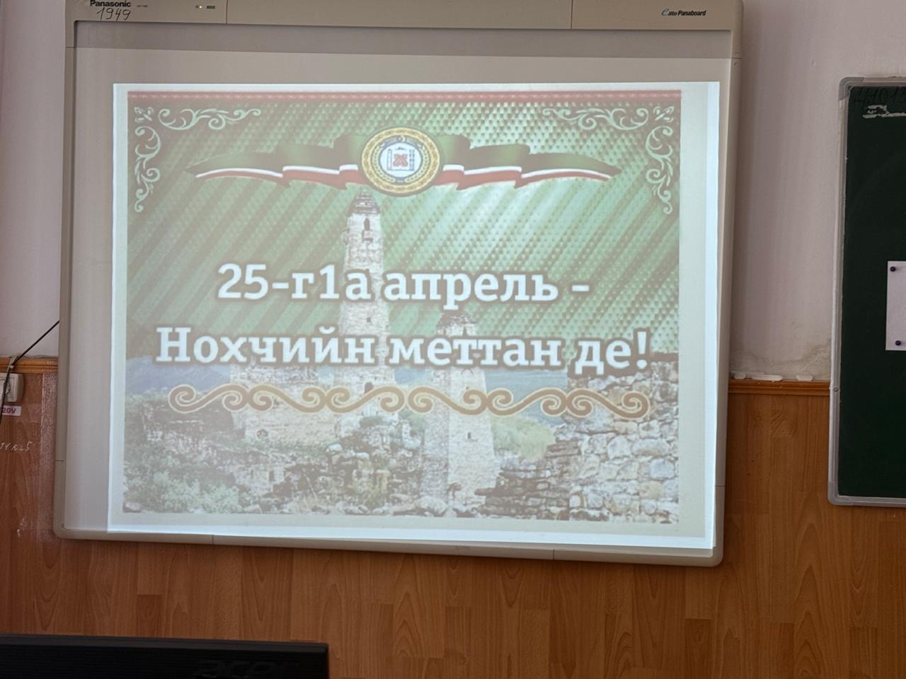 Цо нохчийн меттан денца декъалбира ишколан хьехархой а, дешархой а, иштта хьеший а.Вайн нохчийн меттан исбаьхьа хазнаш йовзуьйтуш, цуьнан г1иллакх-оьздангаллин т1ег1анаш т1ехула вайн дайн ламастийн лакхене вай кхачош, хьанала къахьоьгуш бу Б1аьчи-Юьртара №1 йолчу ишколан нохчийн меттан, литературин хьехархой а, методически цхьаьнакхетараллин декъашхой а.Вайн дайша, жовх1ар санна ларбеш схьабеана болу вайн хаза Мотт, доха доллу куьзга санна ларбеш, хазбеш бийцар лойла вайна Дала т1ейог1учу ханна а!