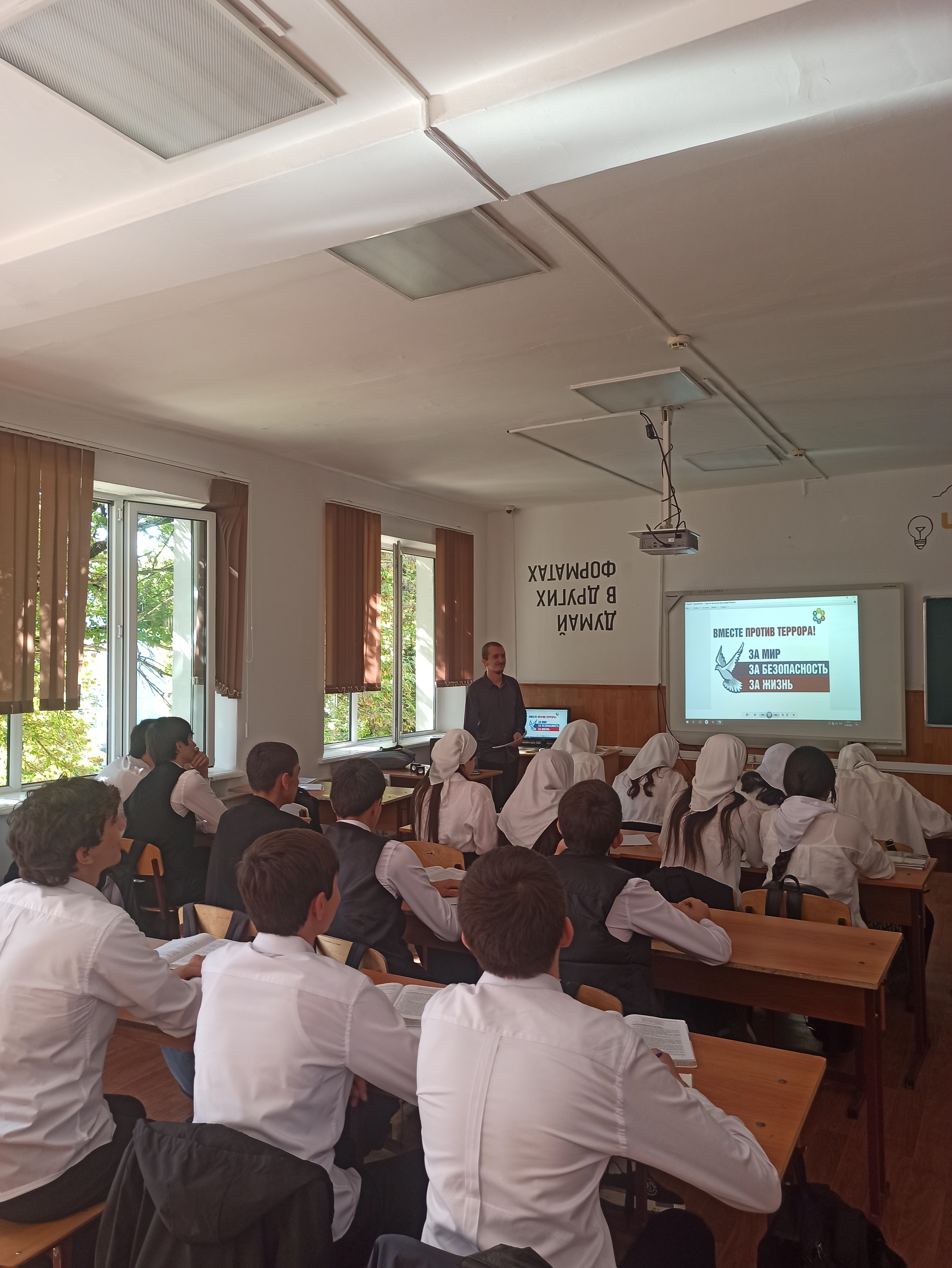 В ходе встречи со школьниками сотрудники Управления рассказали, что основными целями в борьбе терроризмом являются выявление, предупреждение, пресечение террористической деятельности и минимизации ее последствий, а также защита личности, общества и государства от терроризма.
