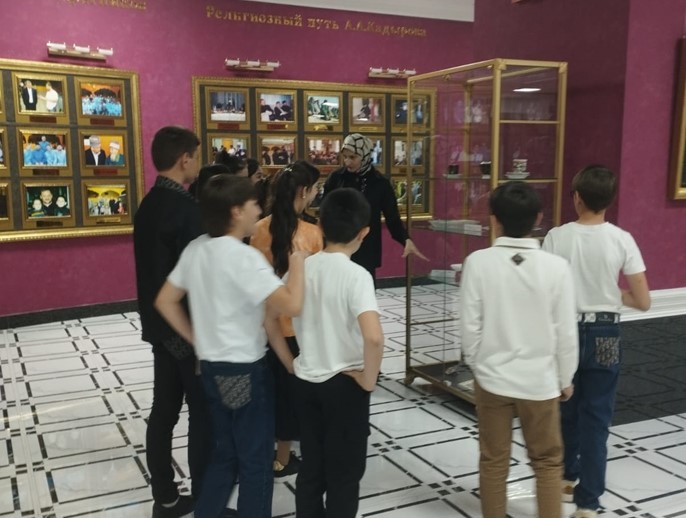 Детей встретила доброжелательная работница музея и начала экскурсию. Для посетителей была проведена экскурсия, в ходе которой ребята узнали много нового и интересного о Первом Президенте Чеченской Республики. Дети были в восторге от посещения музея. По их словам, экскурсия открыла им глаза на то, что сделал Ахмат-Хаджи Кадыров для Чеченской Республики и для России. После экскурсии дети с удовольствием прошлись по залу музея и сделали памятные фотографии.
